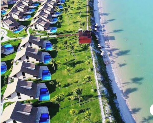De frente para a praia, com piscinas externas