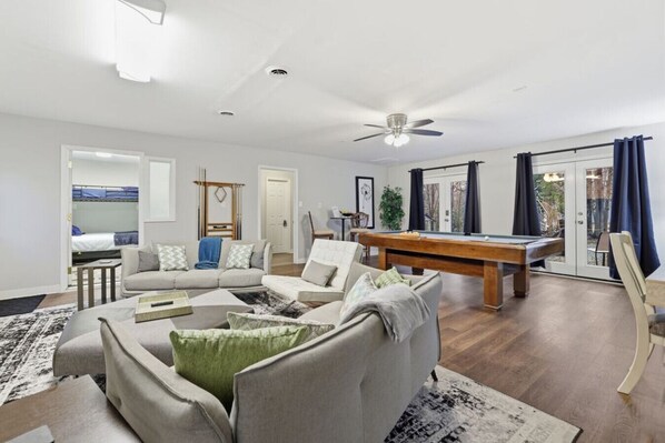 Calling all billiards enthusiasts! The real showstopper of this house is the pool table, with pool balls and cue sticks provided.