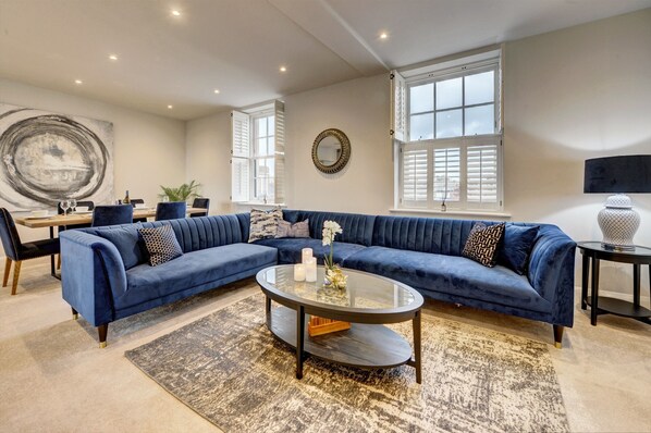 The Living Area has an enormous corner sofa and a 55 Inch smart TV with all of the standard digital TV channels and Netflix preloaded.