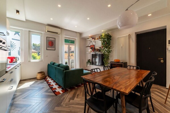 FURTHER SERVICES AVAILABLE TO GUESTS: Unlimited WIFI, central heating with valves, split air conditioning (living room and bedrooms), record player, iron and ironing board, clothes drying rack, coat rack, and two hairdryers.