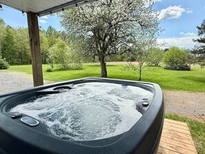 Este chalé em Sainte-Angèle-de-Prémont tem uma banheira de hidromassagem.