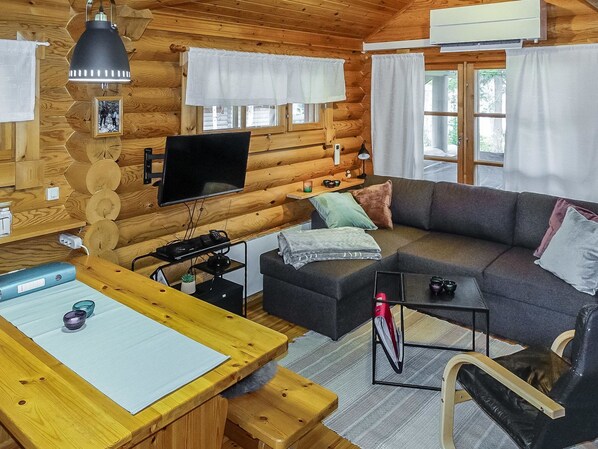 De frente para o lago, esta casa de temporada em Salla dispõe de cozinha
