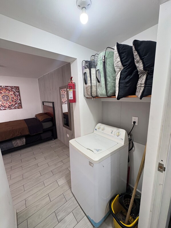 - Máquina de lavar e ferro/tábua de passar roupa