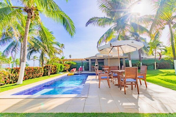 Esta casa de temporada de frente para a praia tem uma piscina interna e fica perto de Praia de Guarajuba
