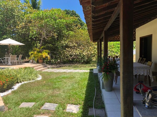 Esta casa de temporada em Camaçari tem uma piscina externa.