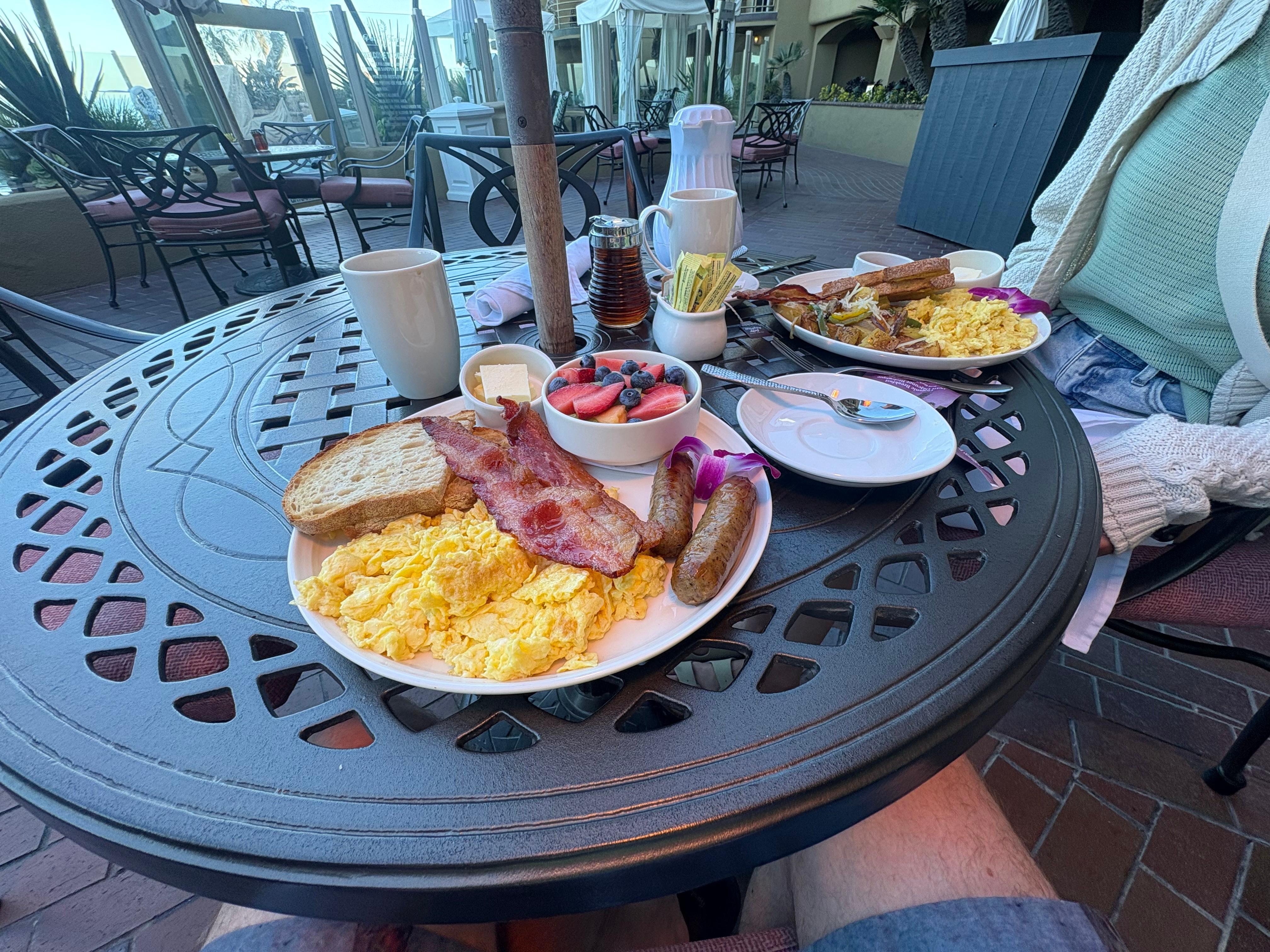 Where do I start? EVERYTHING was absolutely perfect!!! The staff was so friendly and helpful. The food from the cafe was outstanding! The room was fabulous and our partial ocean view room was perfect! Having coffee and sitting on the balcony watching the surf and people and dogs on the boardwalk was so relaxing. Room was super clean. The big screen with numerous channels and easy casting ability and comfy beds made for enjoyable evenings. The Evian water and Keurig coffees were a welcome morning amenity. We were sent chocolate covered strawberries for our birthdays that were over the top. We enjoyed the complimentary beach cruisers and rode the entire boardwalk from PB to Mission Beach and back. This is hand's down the most enjoyable stay I every had. Thank you!