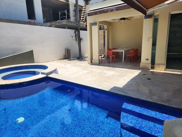 Sim, esta propriedade tem uma piscina.
