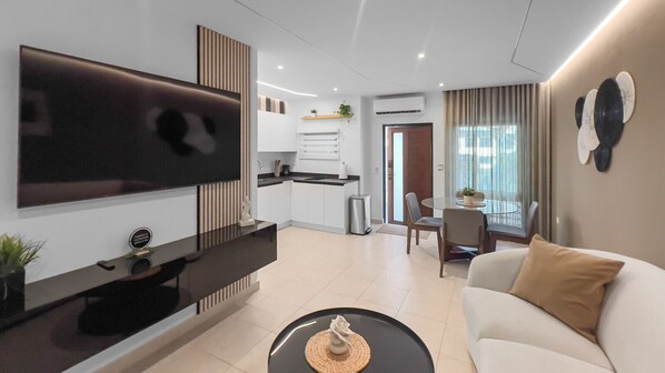 - Smart TV with streaming apps with your accounts