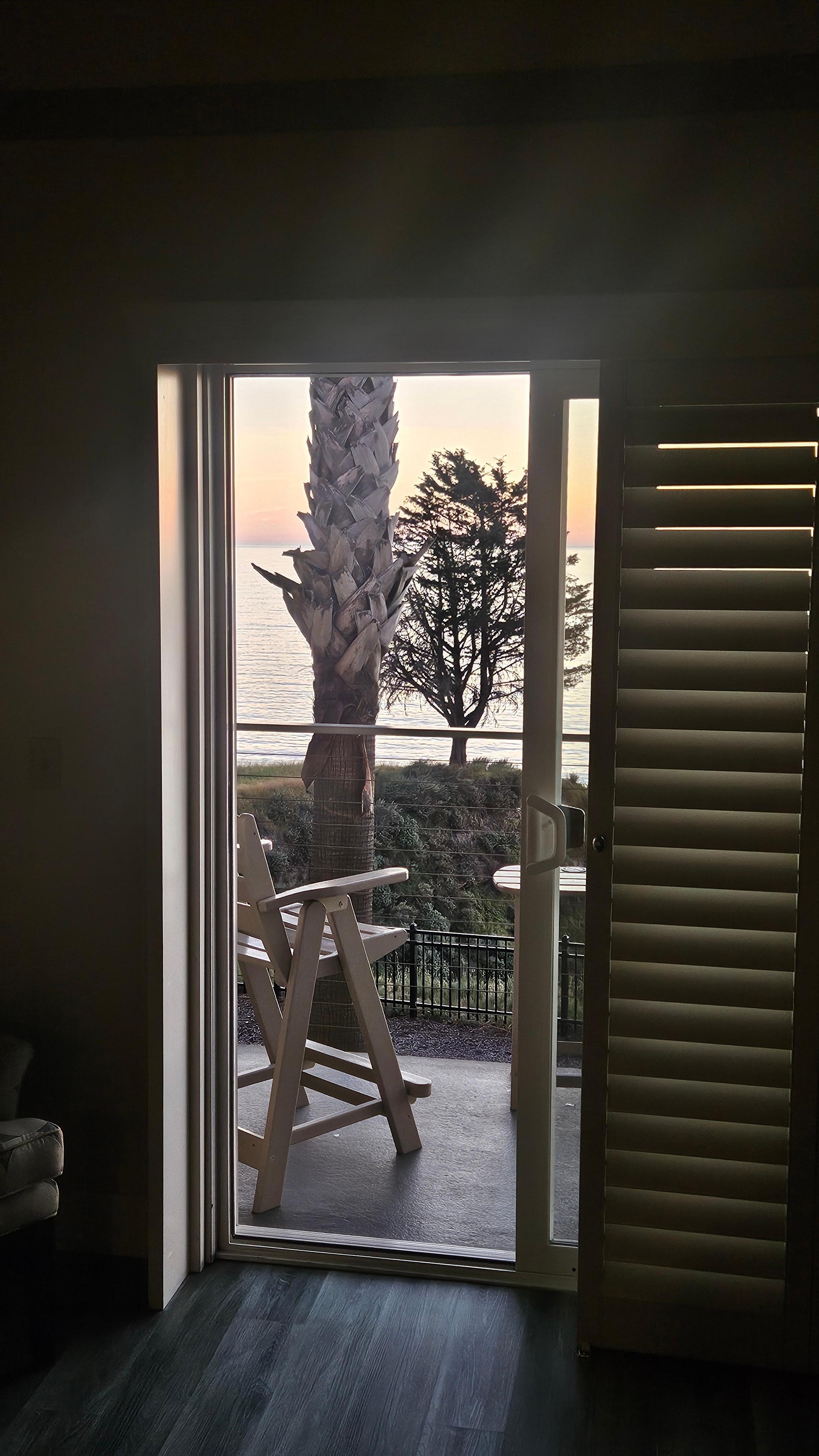 The ocean was visible from our room. We had a comfortable balcony to sit and watch the sunset. The grounds on the property were beautiful with access by stairs down to the cove. Just lovely.