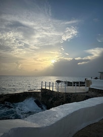 O quarto em que ficamos tinha uma vista para o mar e a limpeza diária era suficiente. Embora o ar-condicionado fosse um pouco barulhento, a água quente do chuveiro era perfeita. Um ponto negativo foi o degrau perigoso no banheiro, que exigia atenção.