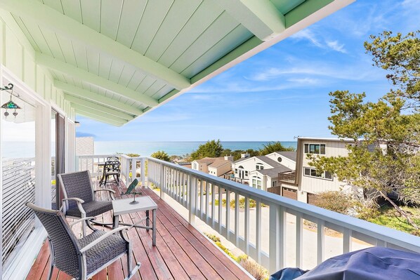 This wonderful single-level home sits on a very quiet corner lot only two blocks from the beach. It’s one of the few single-story homes in the area that offers a hillside ocean view and no stairs inside, making the entire space easily accessible. This layout is especially ideal for guests seeking easier mobility, and it’s perfect for both couples and families looking to relax on the Central Coast.