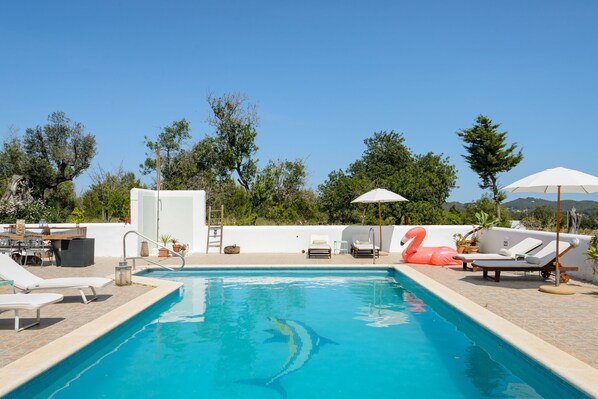 Esta casa de campo para famílias tem uma piscina externa e uma academia