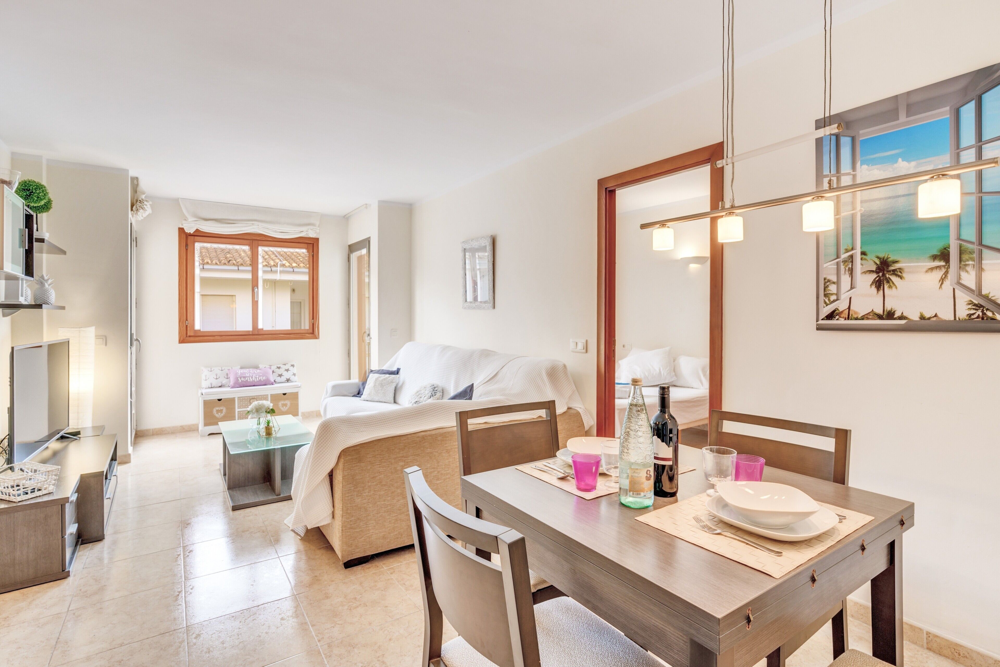 The property is located in the north of the island, in a very quiet place between C'an Picafort and Santa Margalida, with a lovely long beach nearby, and there are restaurants, bars and all types of shops and supermarkets.