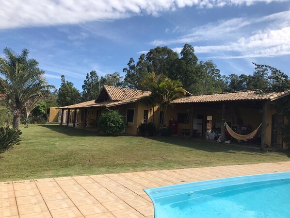 Esta casa de temporada em Guararema dispõe de piscina particular e cozinha