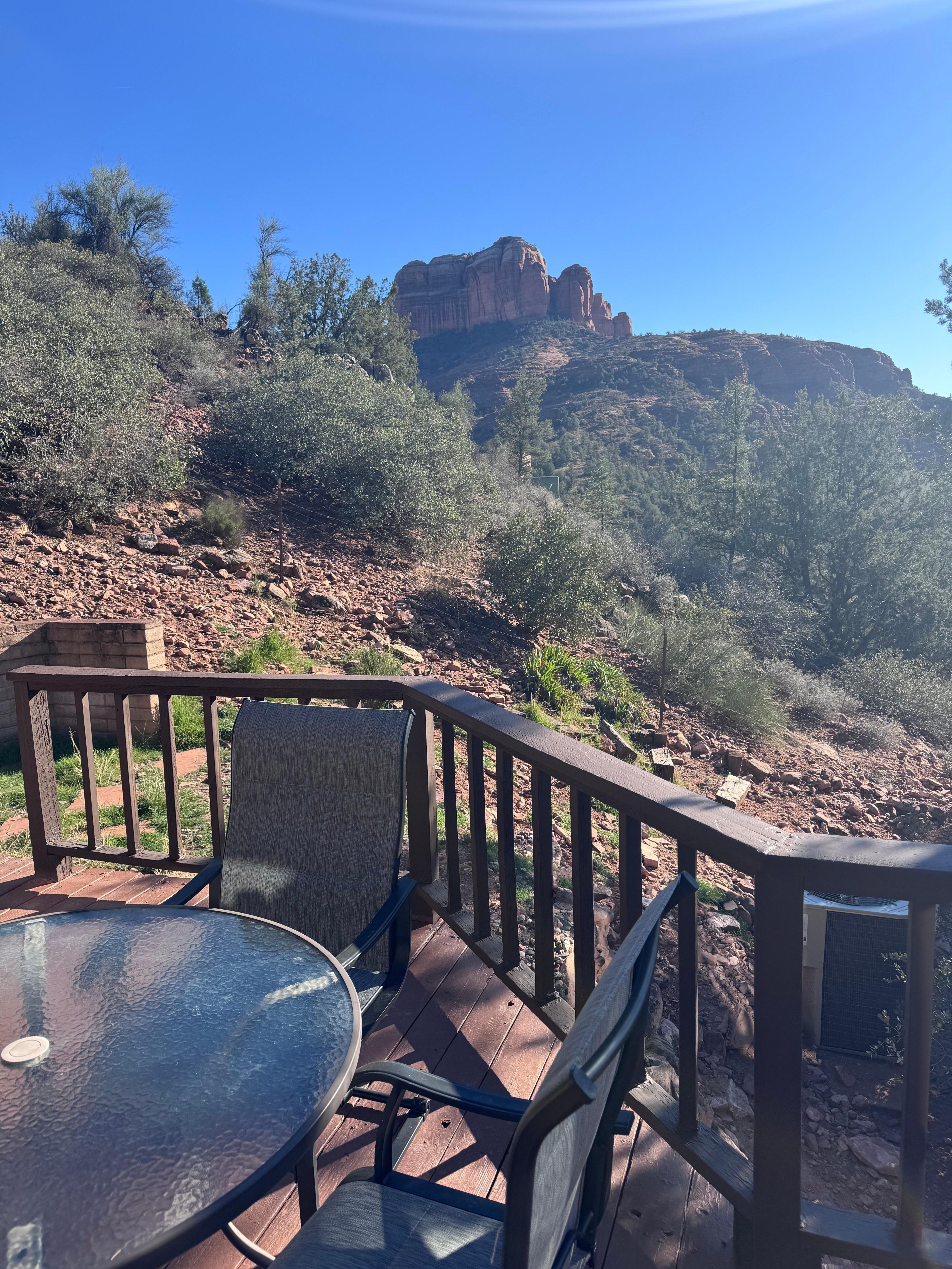 This Pet Friendly 2 BR/2 BA rustic home is the perfect location for the seclusion and privacy you seek during your stay in Sedona. Enjoy incredible views from different balconies and from every window. From a safe distance, you can enjoy watching the Javelinas, Coyotes, Deer, Elk, Quail, Roadrunners and a variety of beautiful birds that frequent the property.