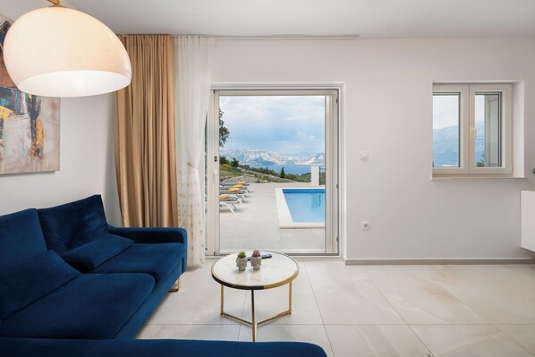 Villa Symphony, heated pool, sea view, beachfront, family, friendly, stylish