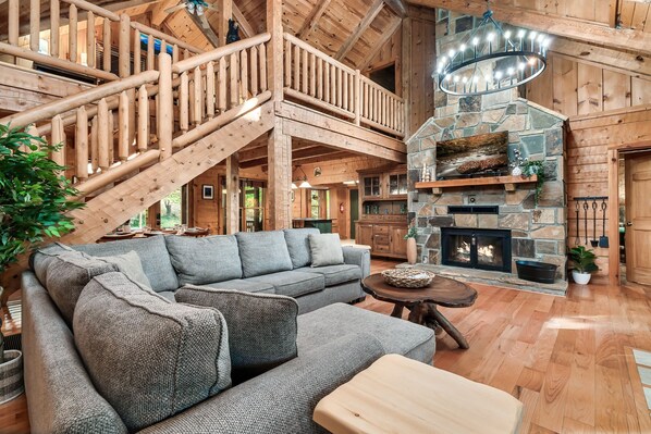 🏔️ Gorgeous, true log cabin 🌲 Private, wooded setting w/ seasonal mountain views 🛏️ 3 King Bedrooms 😴 Memory Foam mattresses 🧸 Kid’s Bunk room w/ play area 👧🏼👦🏻 Kid-friendly items 🎱 Pool Table 🏓 Ping Pong Table 🎲 Game area w/ Poker Table📱Infinity Game Table 🛋️ Open living area w/ Smart TV 🍳 Stocked Kitchen🍴Spacious Dining area ☕️ Coffee Bar 🌅 Large front porch w/ rocking chairs & swings 👧🏼👦🏻 Kid-friendly 👙 Community Pool & 🎾 Pickle Ball Courts 🛜 High Speed Wi-Fi 💻 Workspace 👮🏼‍♂️Gated community w/ Security 🌟 5-star stay and more!