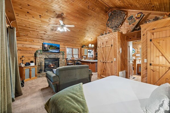 Galeria de fotos de Romantic cabin close to strip w/ private patio, hot tub, and king size bed