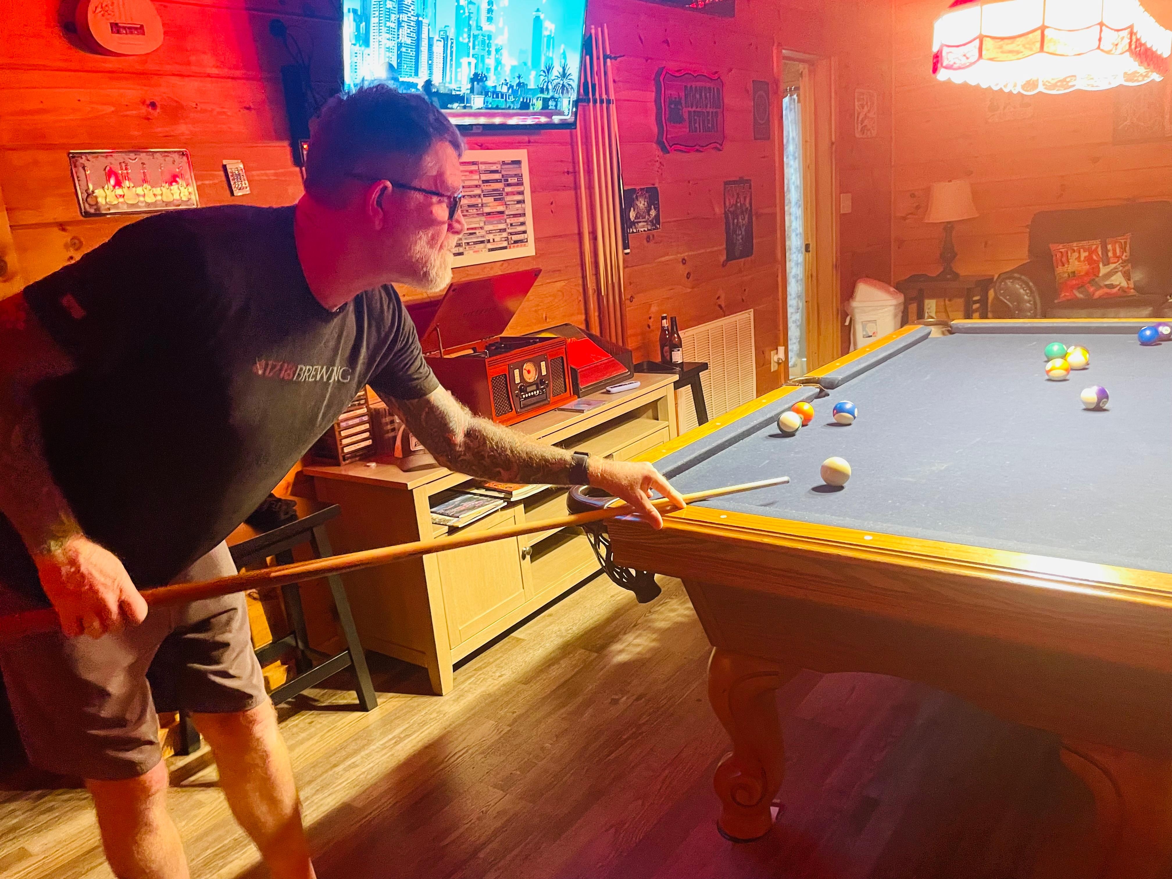 • Pool table, Roku TV, ukulele, remote-controlled LED strip lights