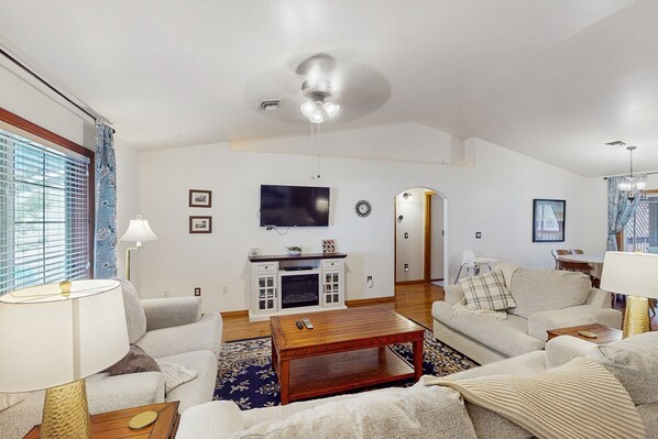 Dog-friendly home w/ covered patio, bbq grill, fenced yard, & central AC
