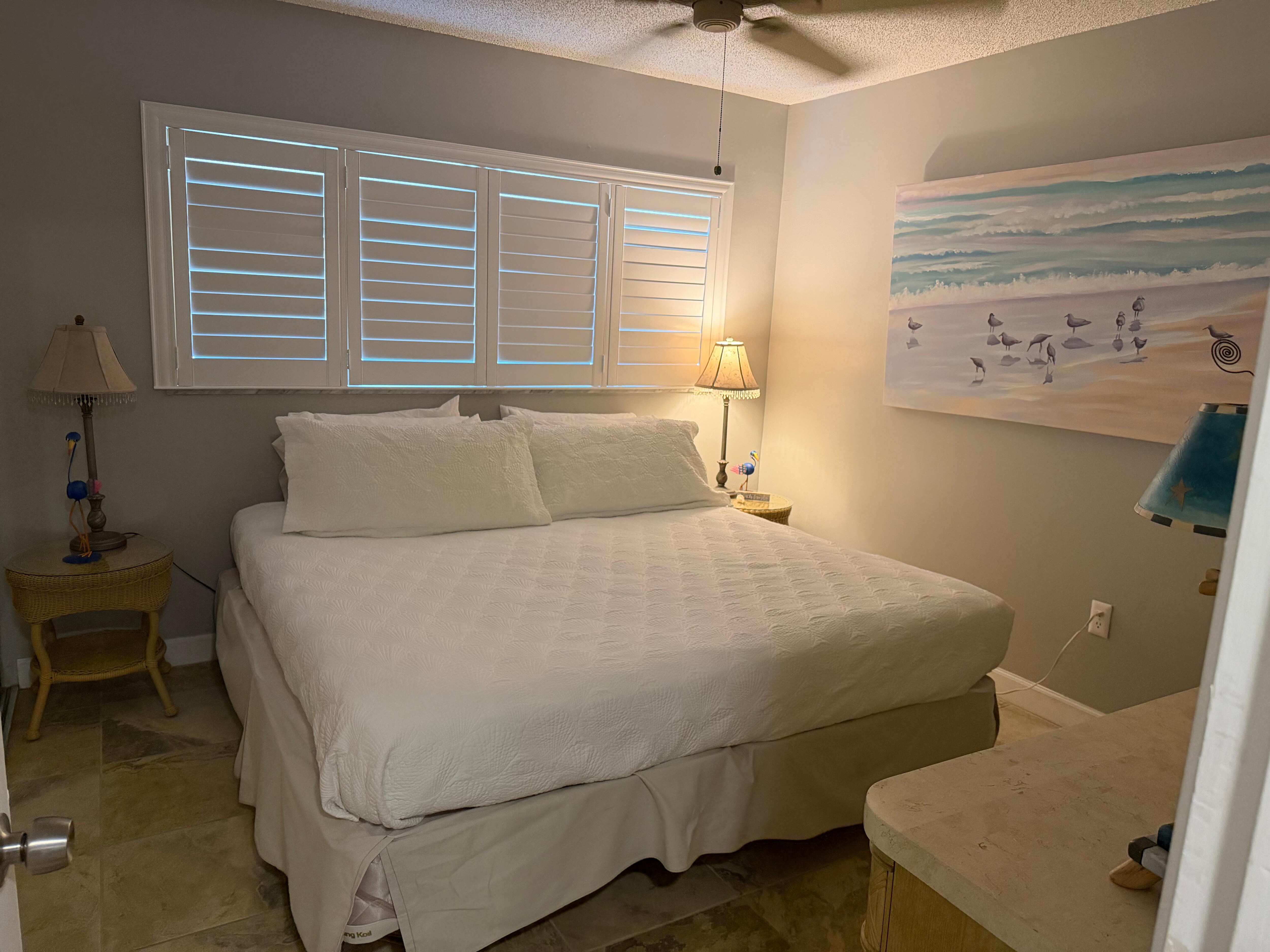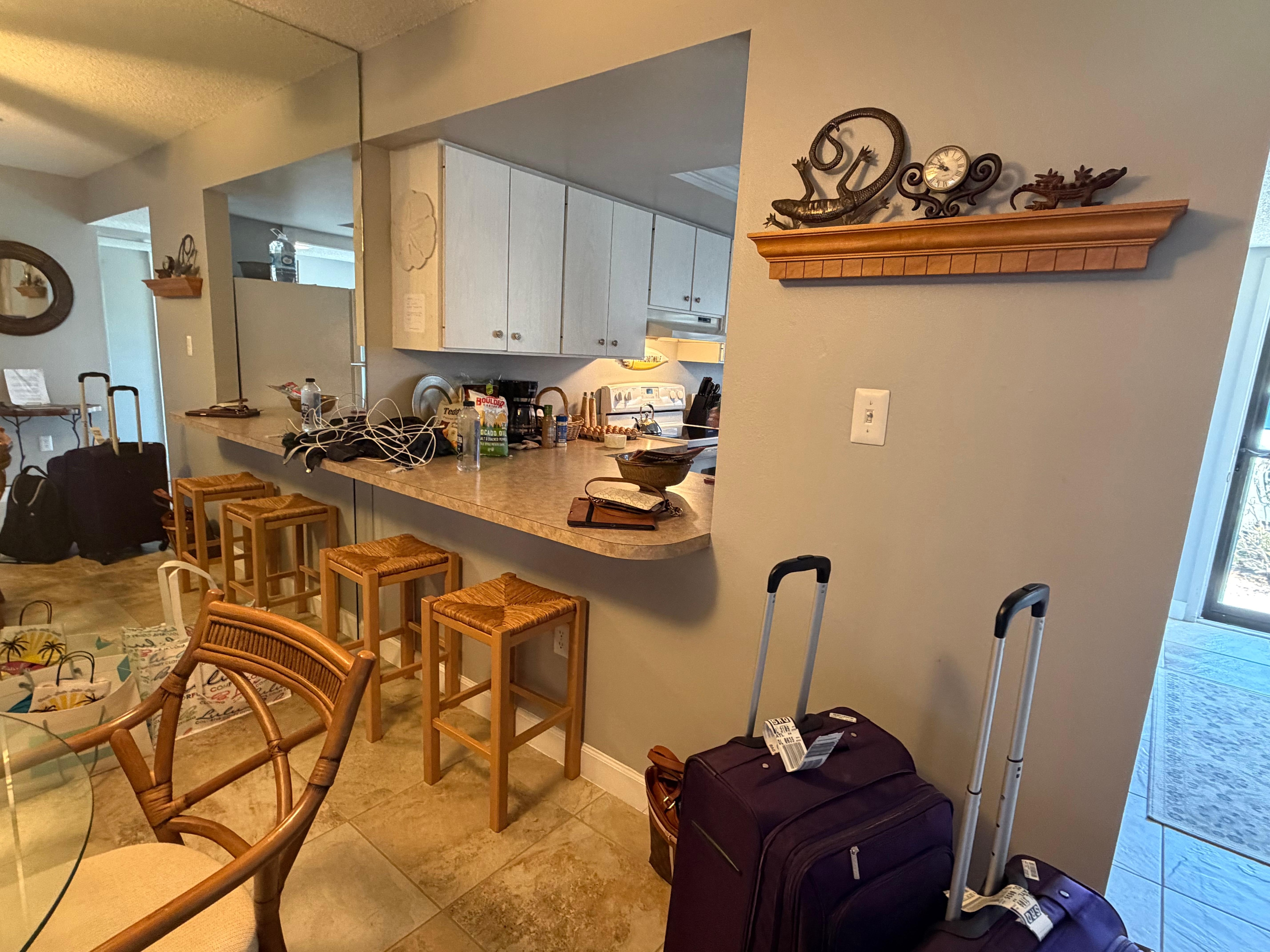 Your condo is located in the back of the complex which is far from the street and very quite. Your condo is walk-in ready with no stairs to manage and a reserved parking spot steps from your front door. The unit features: ● a screened lanai with walkout patio and gas grill in a private setting ● a heated pool 50 steps outside your door ● tiled floors throughout ● a functional, fully equipped kitchen ● towels, sheets, soap, hairdryer ● smart TVs with cable television (family room and master) ● snappy wi-fi ● a retractable beach cart, beach towels, chairs, umbrellas and coolers ● and a keyless entry.