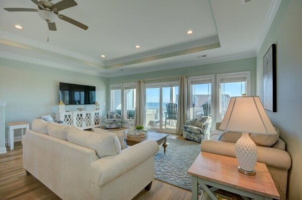 Oceanside King Bedroom with en suite, television, and private balcony