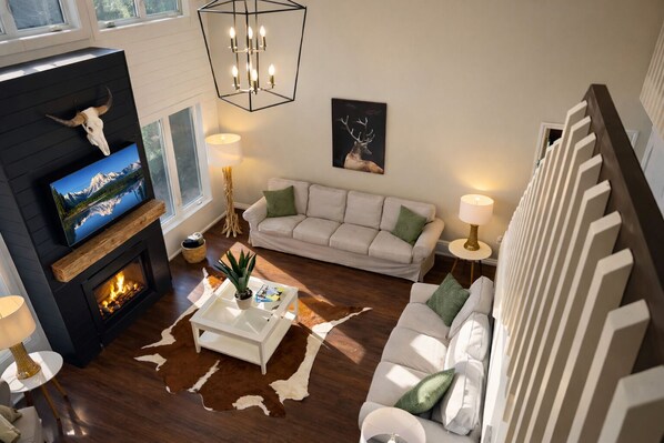 Treetops brings everyone together. The open-concept main floor has vaulted ceilings, large windows, and a warm, cozy vibe that instantly feels like home.