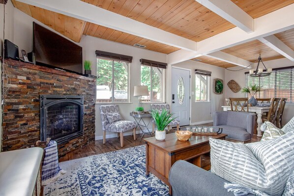 This place was so cute and clean! Went to enjoy some skiing at Tahoe! Very close to that! Beautiful back yard! Would love to stay there during the Summer! This place was a great place to stay!!