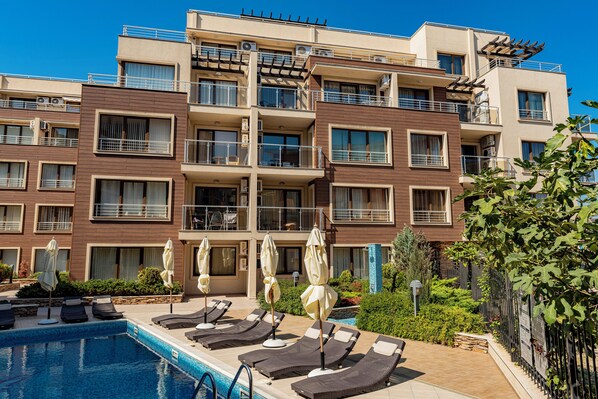 Este apartamento em Sozopol tem piscina externa.