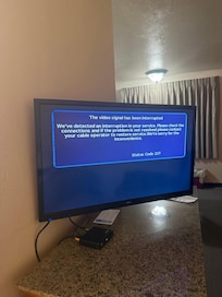 The room was old, outdated, and gross! I found black mold along the caulking next to the tub. The smell of old cigarette smoke gave me terrible headaches. I have dietary restrictions which is why I booked a room with a kitchen. This one had no dishes, pots, pans, etc. The bed looked questionable, so I purchased my own pillow, blanket, and cookware to get through the stay. The WiFi went down on night one, so while I had the ‘Do Not Disturb’ sign up, the manager pounded on my door, then left without saying anything. A work colleague was staying there as well, which is how I learned this was about the WiFi. Very alarming.