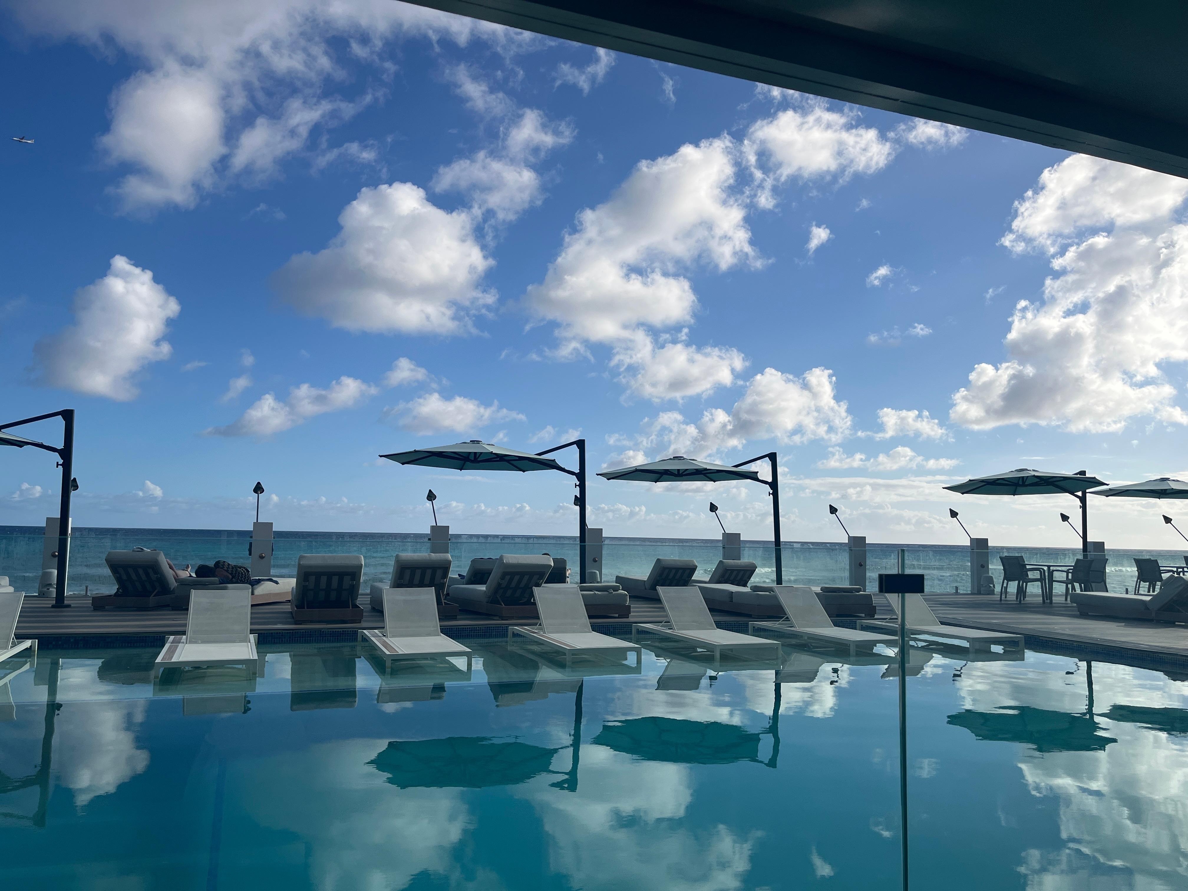 Pool area and deck overlook the ocean so great place to sit and the pool side restaurant was excellent.