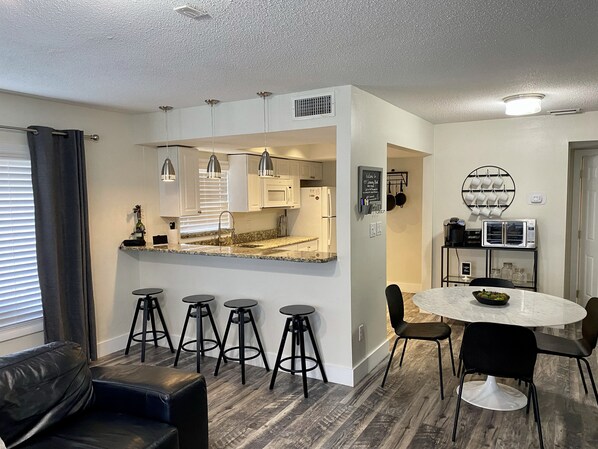 Modern 2 bed with nice amenities.Even had sheets and towels. Close to Honeymoon, Frenchys, and downtown Dunedin.Could use a oven, more outlets, and a couple lamps. Great hosts!