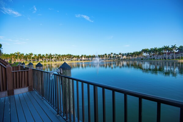 De frente para o lago, esta casa de temporada dispõe de cozinha e pátio