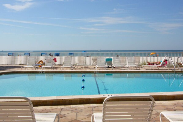 The Sandy Shores condominium building is located in Madeira Beach, across the street from Johns Pass Village, and directly on the Gulf of Mexico. The white, sandy beach boasts some of the very best the area has to offer, and the large beachfront pool will provide you with a perfect space to relax and soak up some well-earned Florida sunshine!
