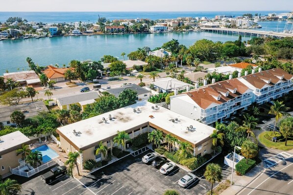 Here are the negatives: The property is on a busy road far from the beach. There is a view of the parking lot. While my stay was enjoyable, I did encounter a couple of minor inconveniences. For instance, I couldn't find a corkscrew to open a bottle of wine, and I even ran out of salt. I understand that these things can happen, and I'm sure they can be easily addressed. For the positives: it is in St. Pete Beach.