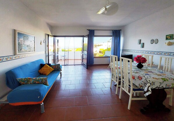 The living room leads to the sea view entrance.