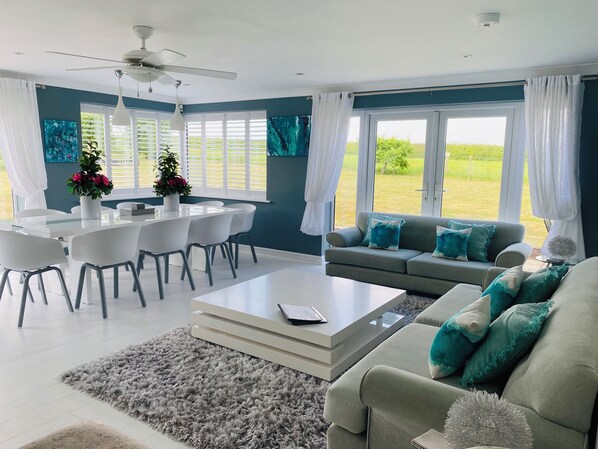 Ideal for family get togethers or special occasions .The house Is set in over an acre of land and has been designed to take full advantage of its beautiful location with lots of light , and views over the surrounding countryside.