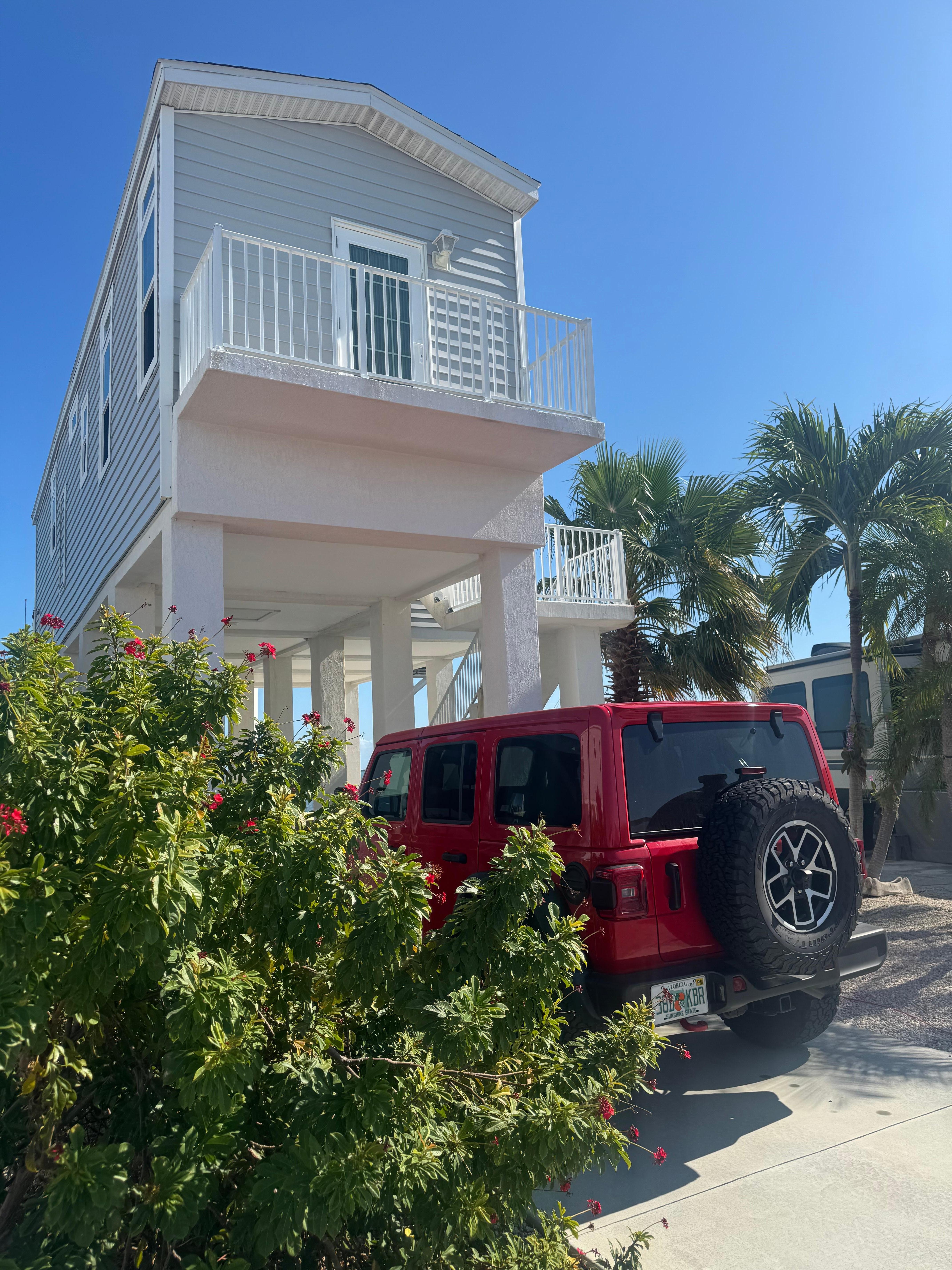 Located inside Venture Out on Cudjoe Key. A separate Registration Fee of $125 (subject to change) will be charged by Venture Out at time of arrival. This fee must be paid with cash or credit card (4% credit card fee will apply). Parking for 1 vehicle per Unit. This vehicle must fit on the driveway and not extend out to the road. The driveway measurements are 25'L x 9'W x 12H'. If your vehicle does not fit when you arrive, you will need to see the guard gate for an additional parking pass for the overflow lot which costs $5/day. Extra parking permit may be available at the Guard Station for an additional nightly fee for a maximum of 14 days depending on availability. Must follow all the Rules and Regulations during your stay.