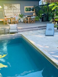 Sim, esta propriedade conta com uma piscina externa. O acesso à piscina está disponível entre 8h e 20h.
