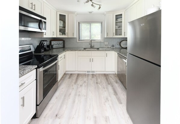 Internet, Televisions, Heat & Central A/C, Ceiling Fans, Washer & Dryer, Range & Oven, Microwave, Refrigerator, Dishwasher, Basic Kitchen Amenities. All bedding will have a mattress cover, pillows and comforter or bedspread. We also provide a small bar of soap at each sink, one roll of toilet paper in each bathroom, and a trash bag in each trashcan. Guests should be prepared to provide any of these items as needed beyond what we supply. Guests are also responsible for providing detergents, spices, salt & pepper, sugar, etc., as needed.