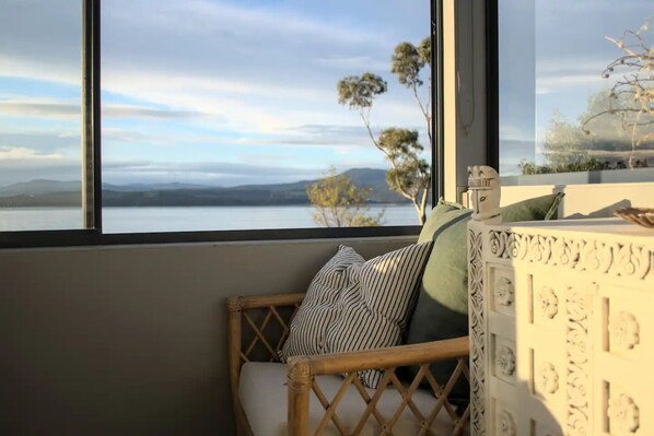 - a spacious north facing sunroom with oversized chairs and lounge to take in the dreamy coastal landscape of Southern Tasmania.
