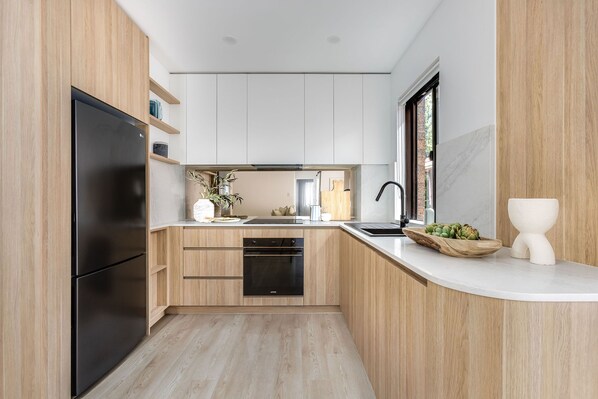- Newly renovated apartment with quality finishes and designer furnishings. - Modern Floorboards throughout - Fully equipped kitchen with new appliances - SMEG commercial grade oven and induction cooktop - Built in laundry amenities including washing machine and dryer - Air conditioning and heating - Smart TV including access to Nextflix - Keyless, pin entry for convenience and security - Private car park - Sustainable, eco-friendly guest amenities from ZeroCo and Who Gives a Crap - Free unlimited, fast NBN100 Wi-Fi