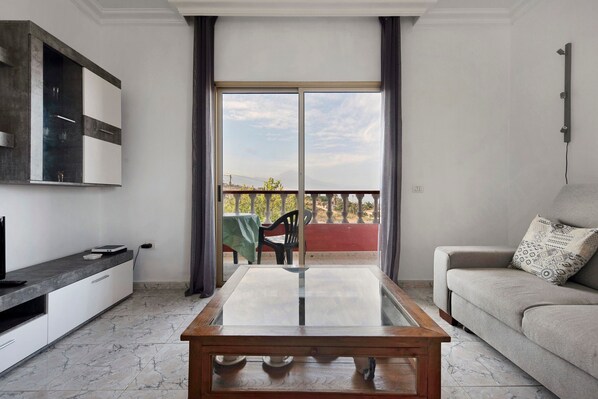 Vom alleinstehenden Haus mit Garten hat man einen traumhaften Blick zum Meer und zum Teide. Auf dem Dach kann man in der Sonne liegen oder Yoga machen.