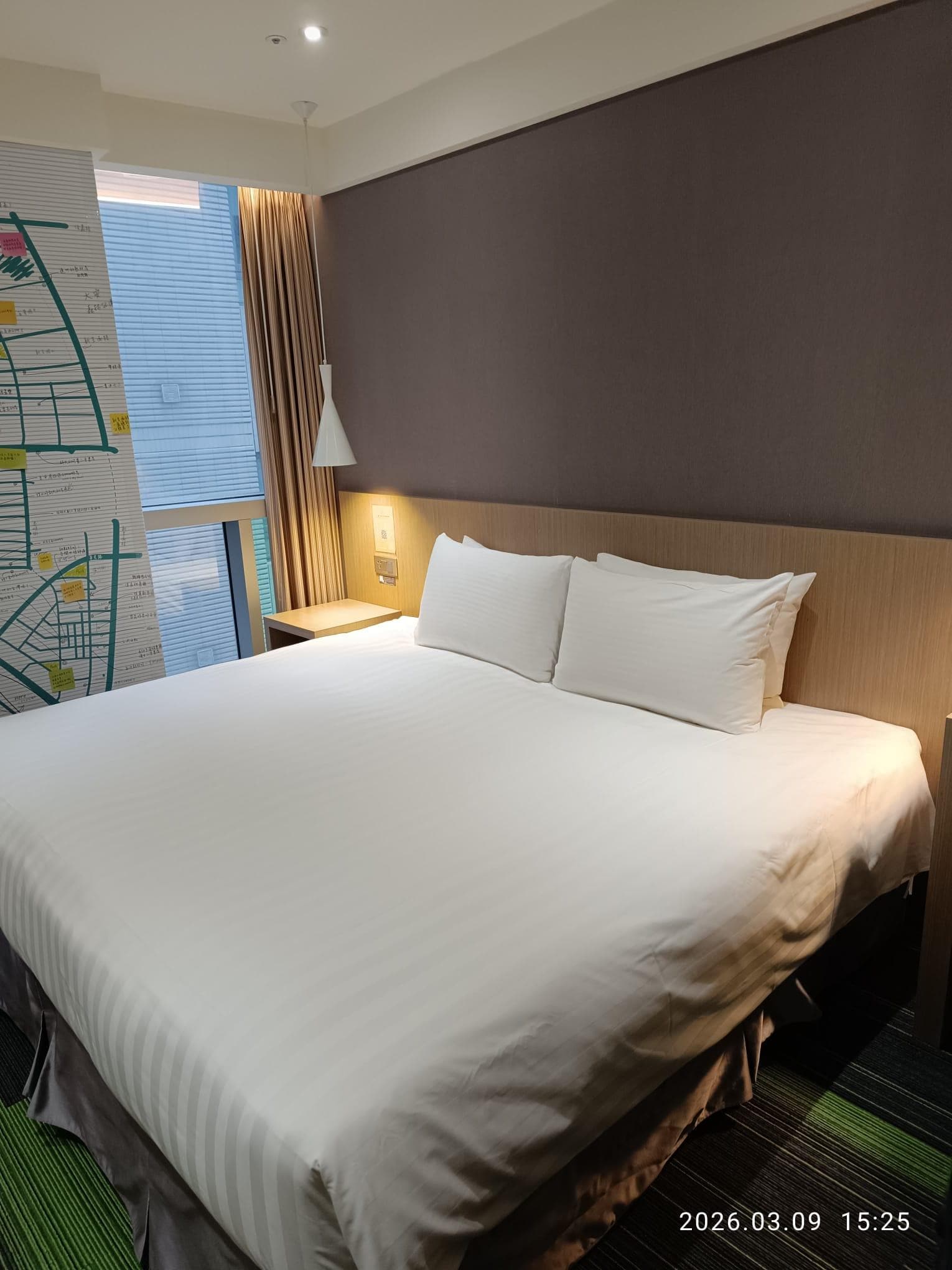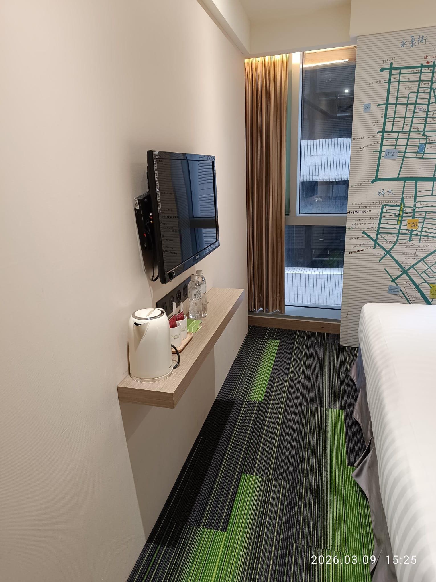 The staff and service are great! The location is amazing. Right outside of dongmen station exit 8 which has an elevator for your luggage. Right across from yongkang st and a few stops from major attractions. The hotel is just down the alley behind the post office with the lobby on floor L. The single bed room is a decent size for solo travelers, the shower has good water pressure, and the toilet has a bidet. The hotel has a coin operated washer and dryer with free detergent. The downside is the hotel elevator can be a little slow since there’s only 1 and many floors. If you can, I recommend taking the stairs. The bed isn’t the most comfortable but it does the job. The room is a bit dusty but overall pretty clean. I would stay here again.