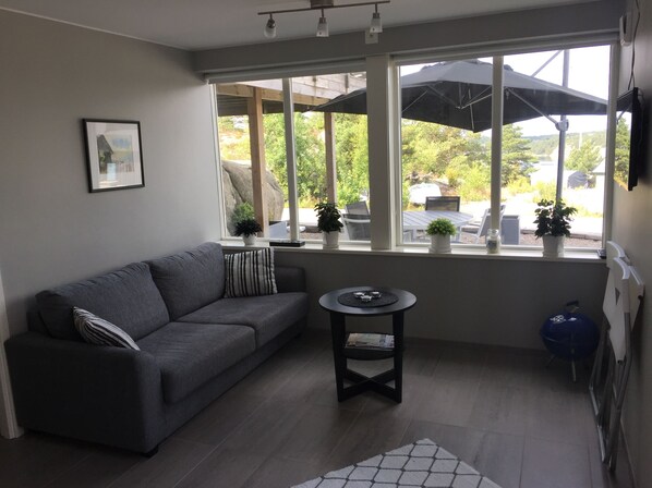 Lägenheten var helt perfekt för 2 personer. Allt som behövdes fanns och det var nära till allt. Tyvärr var inte vädrets makter med oss så uteplatsen kunde vi inte njuta av. Vi kan varmt rekommendera lägenheten.