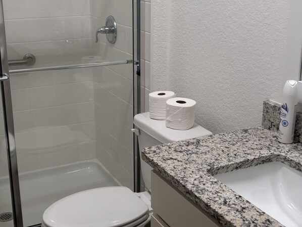 Chuveiros, secadores de cabelo e sabonete