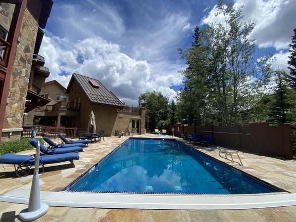 - Shared amenities: heated pool and hot tub (open summer & winter closed mid-April to early June and late September to late December)