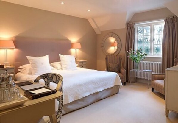 Calcot Manor welcomes you into their sumptuous, homelike setting and beautiful, peaceful grounds. There is a fabulous spa at your disposal and several great places to enjoy a drink and meal by the fire (in March). Highly recommend this hotel, and the linens and beds are superior.