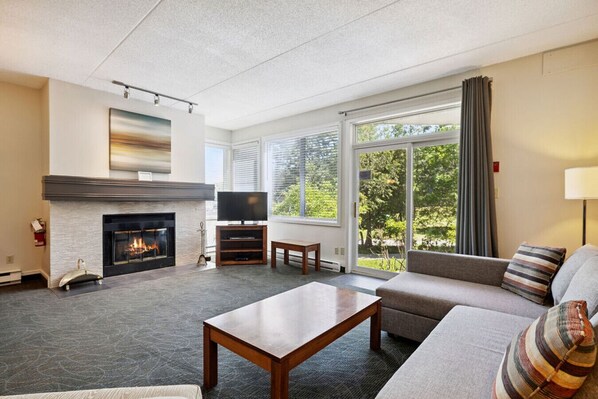 Perfect for relaxing and enjoying some “apres-ski”, this home features a cozy living area with comfortable seating surrounding the wood-burning fireplace (bring your own wood/kindling). Our unit is equipped with all the amenities you need for a comfortable stay, including high-speed Wi-Fi and Cable TV for your entertainment.