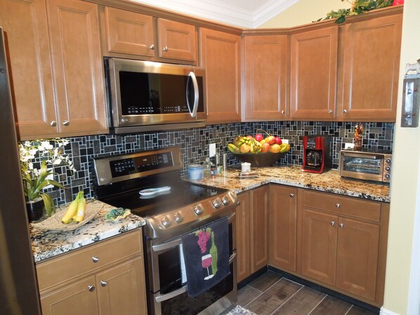 The kitchen appliances are all brand new stainless with a whisper quiet dishwasher, door in door fridge with two icemakers, and stove with double porcelain oven and powerful microwave. Backsplash is a mosaic of porcelain and iridized glass.